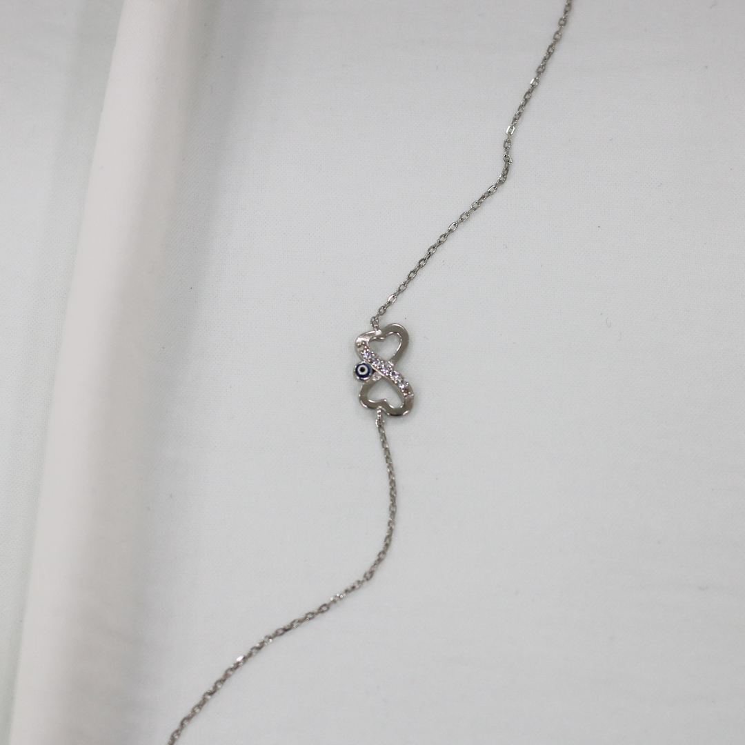 Βραχιόλι ασημένιο επιπλατινωμένο με ματάκι – καρδούλα άπειρο